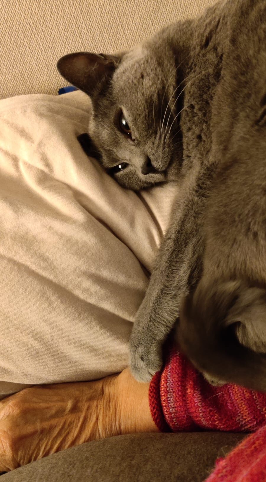Doch genau diese Erfahrungen zeigen auch die wunderbaren Vorteile, die eine erwachsene Katze mitbringt. Emilia hat uns bereits über die Tierkommunikatorin bestätigt: Sie freute sich auf ihr neues Zuhause, auf ihre neue Katzenmama und die Aufgaben, die dort auf sie warteten. Vom ersten Moment an war ihr Vertrauen spürbar – als hätte sie dieses Zuhause schon lange bestellt. Aus vorsichtigen Kuscheleinheiten wurden schnell lange Schmusezeiten, und inzwischen schläft sie zufrieden schnurrend (und manchmal sogar schnarchend) auf dem Schoß ihrer neuen Mama.